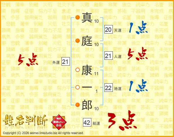 真庭康一郎さんの人運は21画の5点!