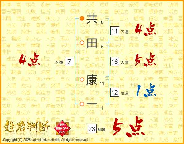 共田康一さんの総運は23画の5点!