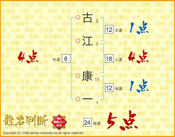 古江康一さんの総運は24画の5点!