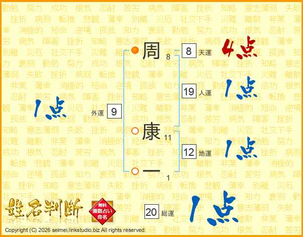 周康一さんの総運は20画の1点!