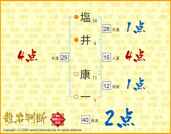 塩(24画)井(4画) 康(11画)一(1画)