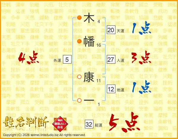 木幡康一さんの総運は32画の5点!