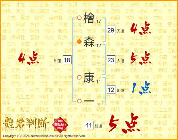 檜森康一さんの人運は23画の5点!