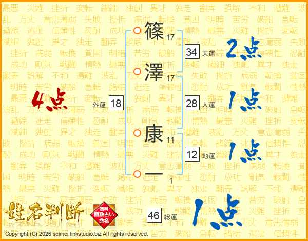 篠澤康一さんの総運は46画の1点!