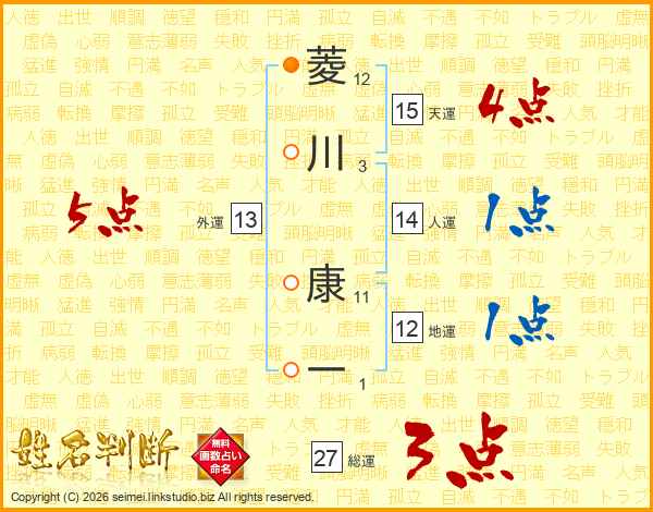菱川康一さんの総運は27画の3点!