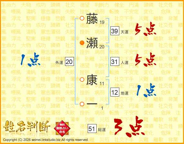 藤瀬康一さんの総運は51画の3点!
