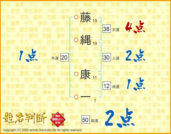藤(19画)縄(19画) 康(11画)一(1画)