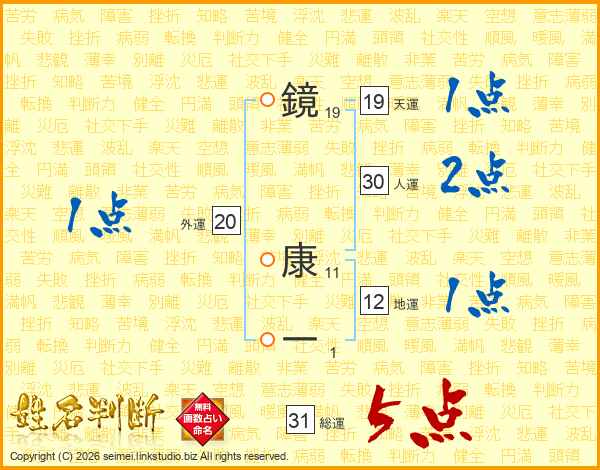 鏡康一さんの総運は31画の5点!
