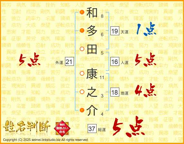 和(8画)多(6画)田(5画) 康(11画)之(3画)介(4画)