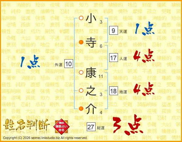 小寺康之介さんの総運は27画の3点!