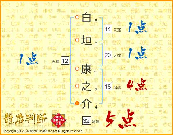 白垣康之介さんの総運は32画の5点!