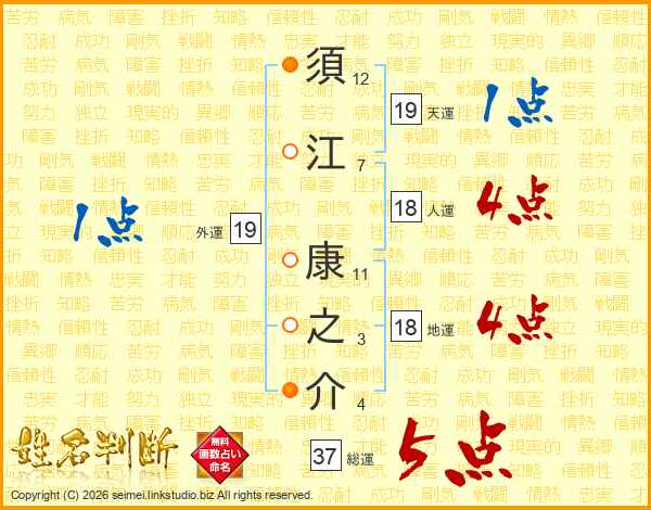 須(12画)江(7画) 康(11画)之(3画)介(4画)