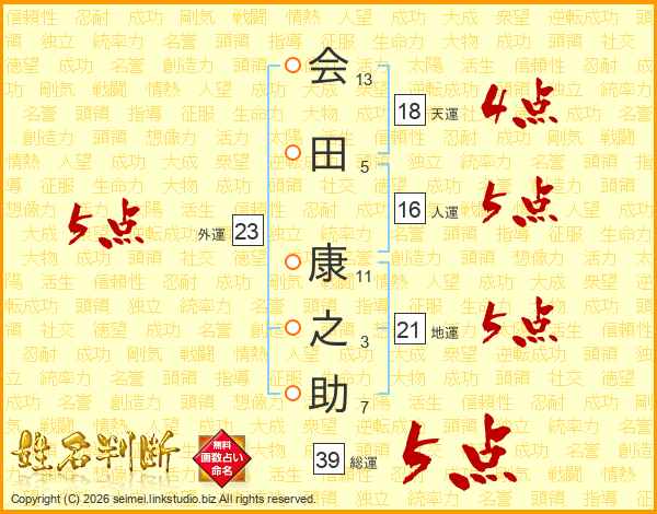 会田康之助さんの総運は39画の5点!