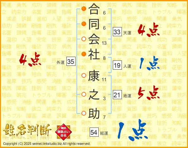 合(6画)同(6画)会(13画)社(8画) 康(11画)之(3画)助(7画)