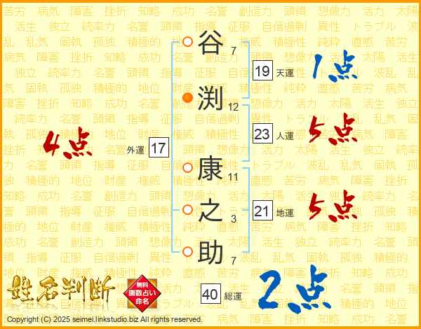 谷渕康之助さんの総運は40画の2点!