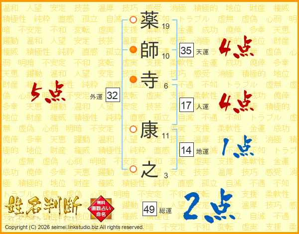 薬師寺康之さんの総運は49画の2点!