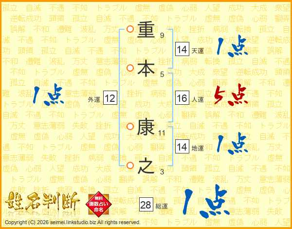 重本康之さんの天運は14画の1点!
