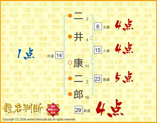 二井康二郎さんの総運は29画の4点!