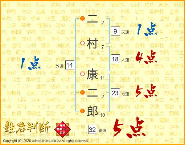 二村康二郎さんの総運は32画の5点!