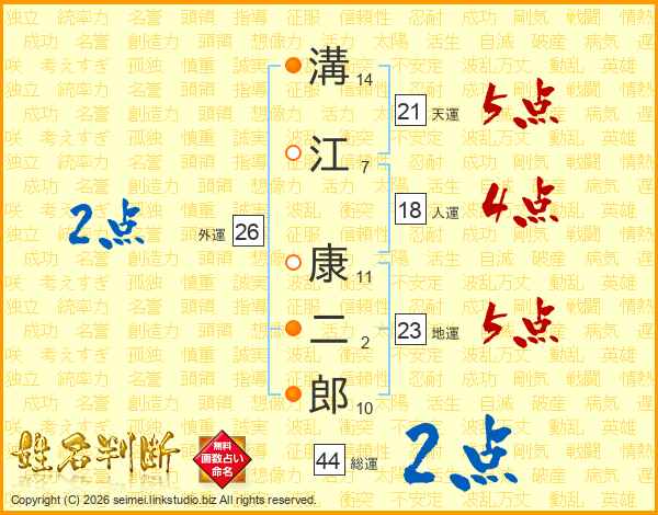 溝江康二郎さんの総運は44画の2点!