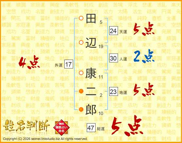 田辺康二郎さんの総運は47画の5点!