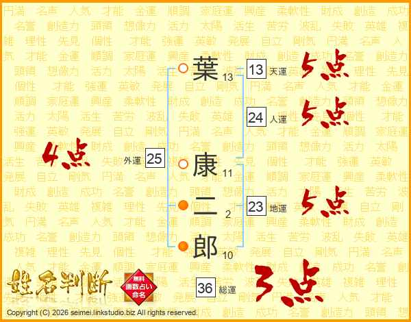 葉康二郎さんの人運は24画の5点!