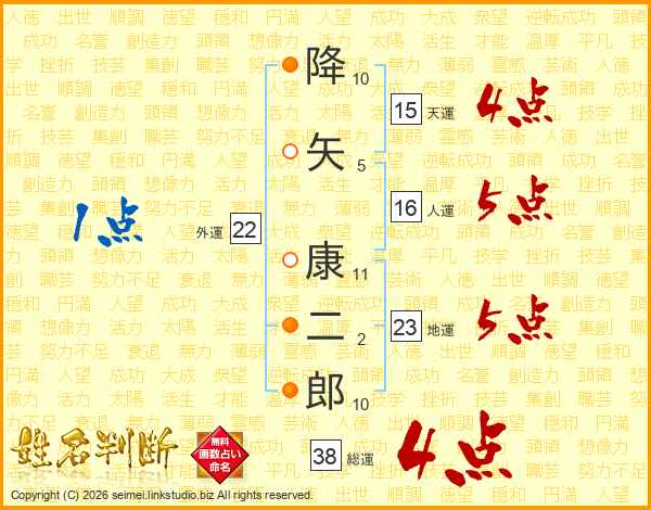 降矢康二郎さんの地運は23画の5点!