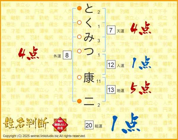 と(2画)く(1画)み(3画)つ(1画) 康(11画)二(2画)