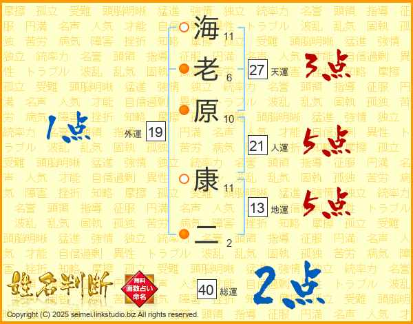 海老原康二さんの天運は27画の3点!