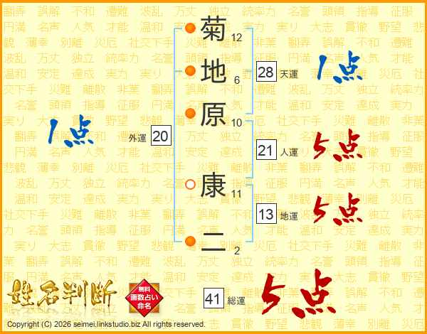菊(12画)地(6画)原(10画) 康(11画)二(2画)