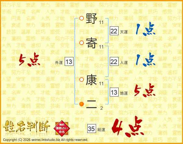 野寄康二さんの天運は22画の1点!