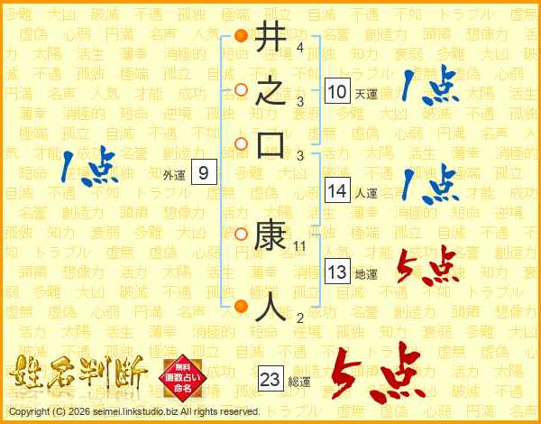 井之口康人さんの総運は23画の5点!