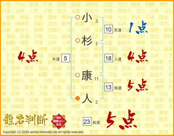 小杉康人さんの総運は23画の5点!