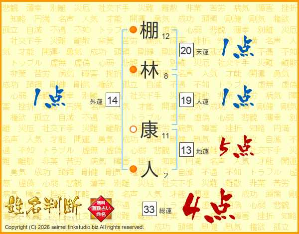 棚林康人さんの総運は33画の4点!