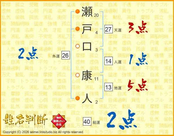 瀬戸口康人さんの総運は40画の2点!