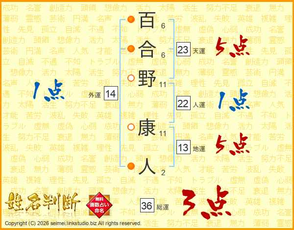 百(6画)合(6画)野(11画) 康(11画)人(2画)