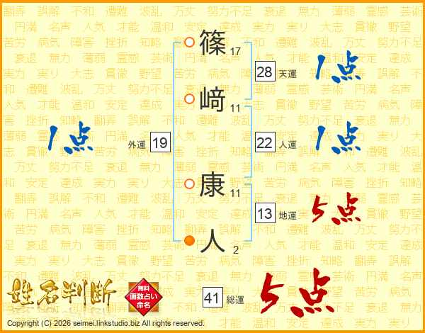 篠﨑康人さんの総運は41画の5点!