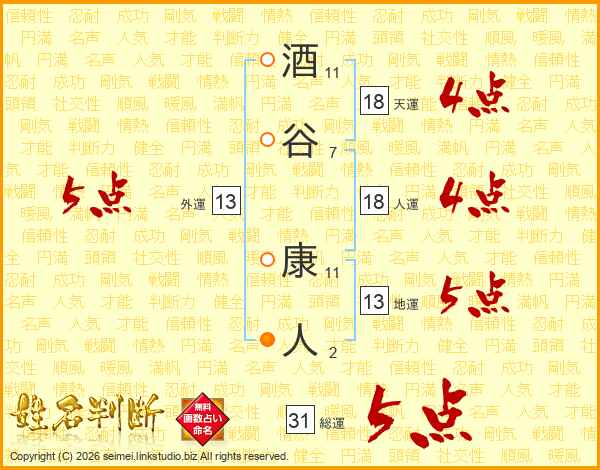 酒谷康人さんの総運は31画の5点!