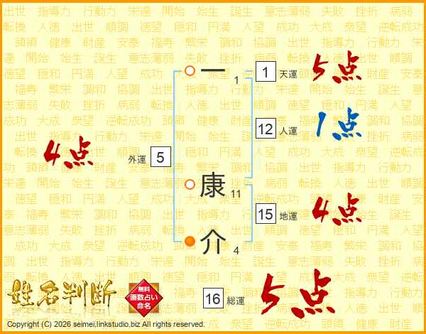 一康介さんの総運は16画の5点!