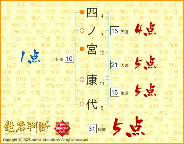 四ノ宮康代さんの総運は31画の5点!