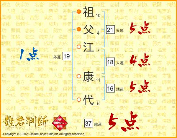祖(10画)父(4画)江(7画) 康(11画)代(5画)