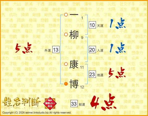 一柳康博さんの総運は33画の4点!