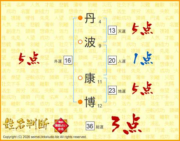 丹波康博さんの総運は36画の3点!