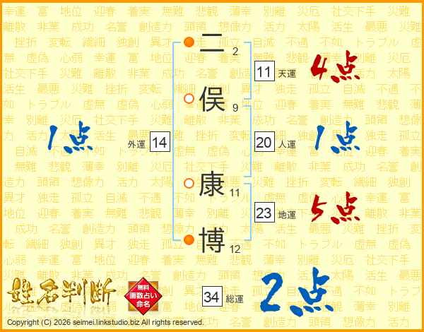 二俣康博さんの天運は11画の4点!