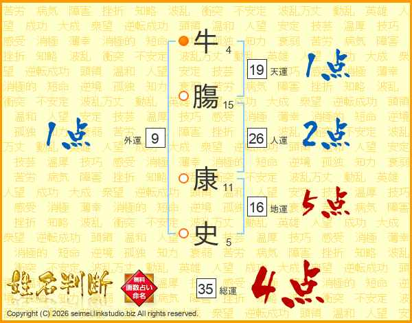 牛膓康史さんの総運は35画の4点!