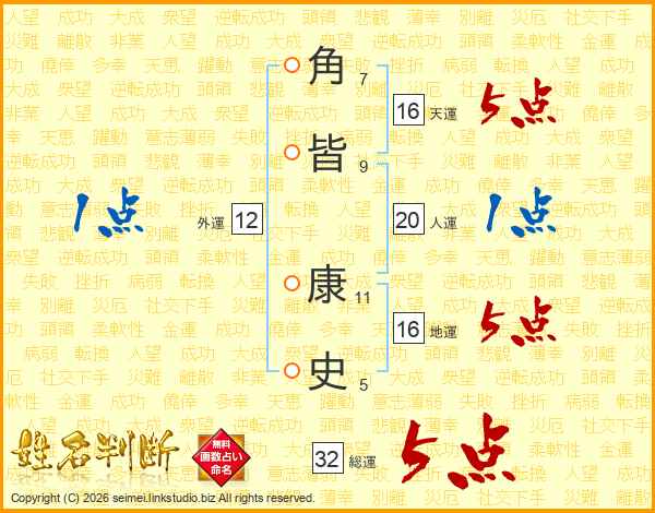 角皆康史さんの総運は32画の5点!