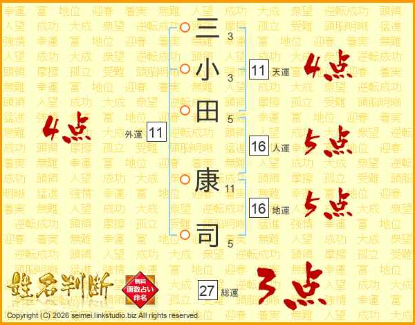 三小田康司さんの天運は11画の4点!