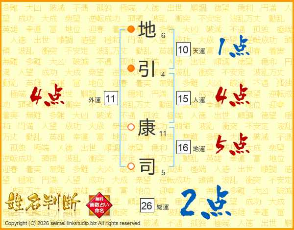 地(6画)引(4画) 康(11画)司(5画)