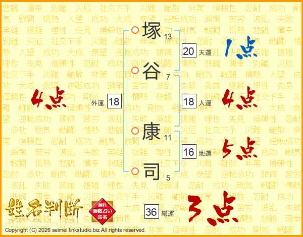 塚谷康司さんの総運は36画の3点!
