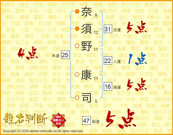 奈(8画)須(12画)野(11画) 康(11画)司(5画)